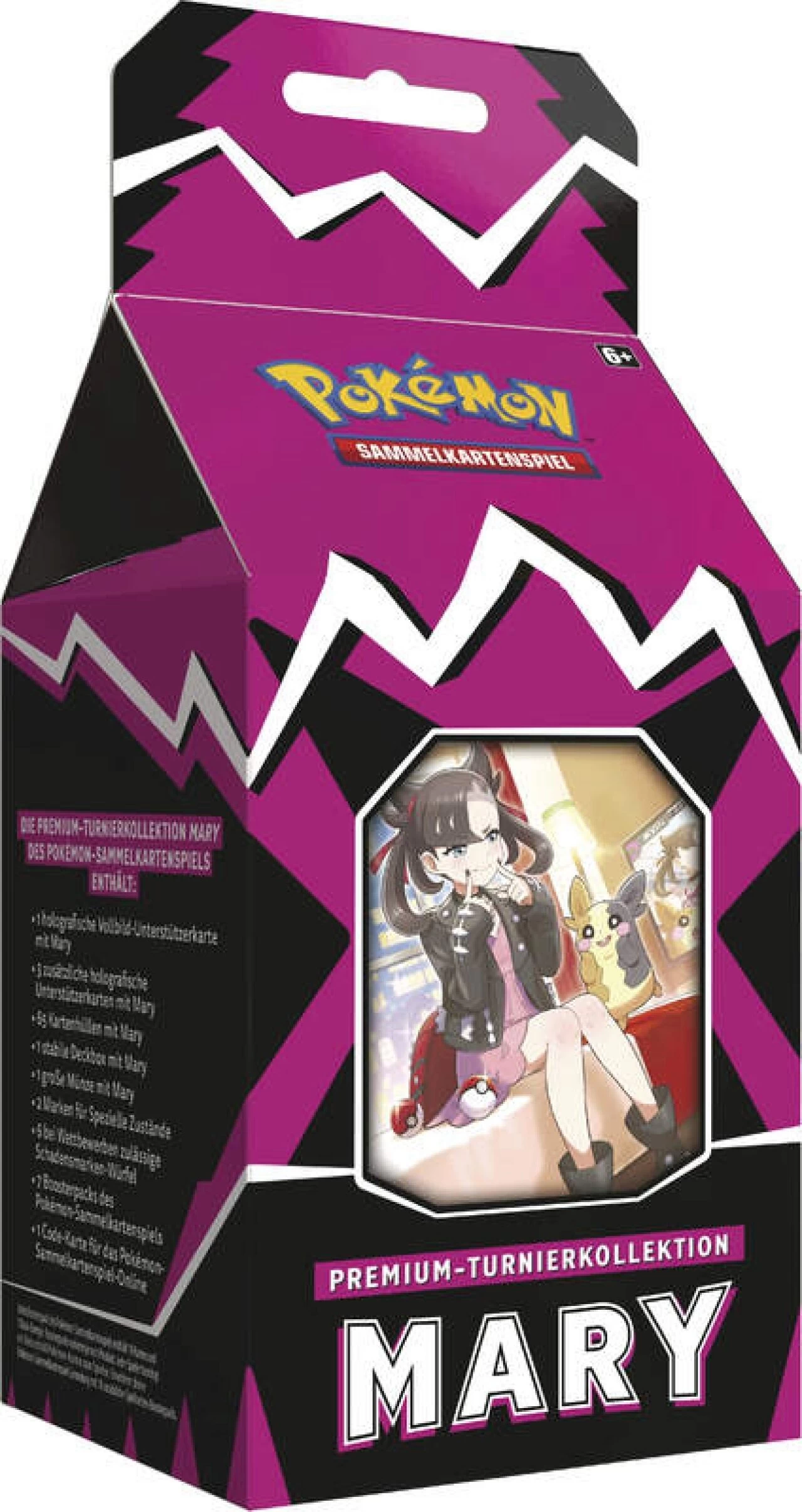 Die Premium-Turnierkollektion Mary des Pokémon-Sammelkartenspiels enthält: