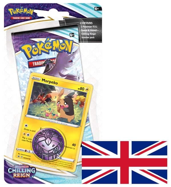 Ein Checklane Blister (Version Morpeko) des Erweiterungs-Sets „Chilling Reign“ aus der Pokemon Sword & Shield Serie mit folgendem Inhalt: