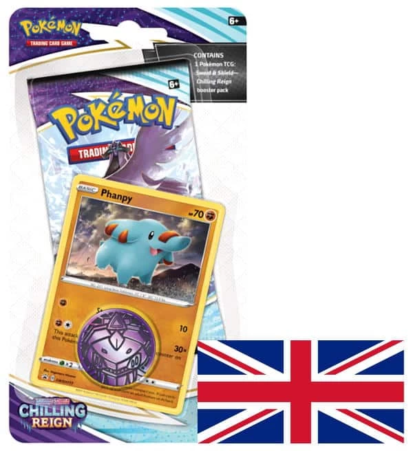 Ein Checklane Blister (Version Phanpy) des Erweiterungs-Sets „Chilling Reign“ aus der Pokemon Sword & Shield Serie mit folgendem Inhalt:
