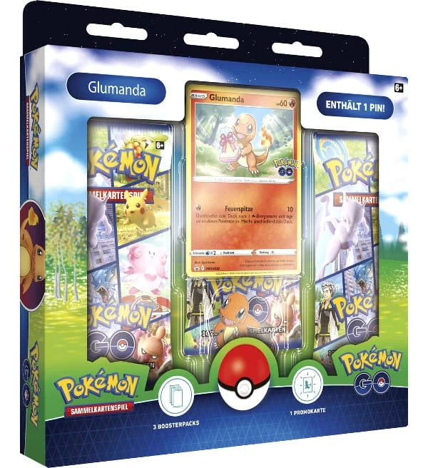 Die Pokemon GO – Pin-Box Glumanda (deutsche Version) mit folgendem Inhalt: