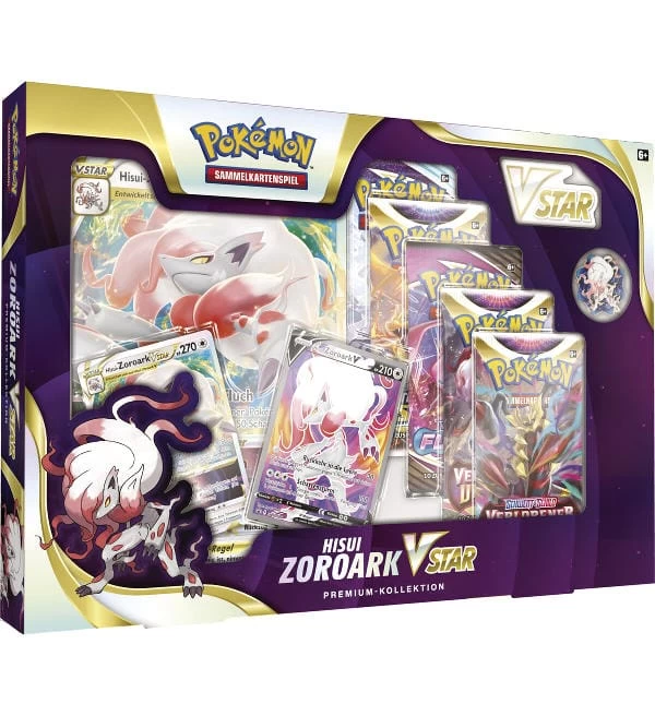 Die Pokémon Hisui-Zoroark VSTAR Premium-Kollektion mit folgendem Inhalt: