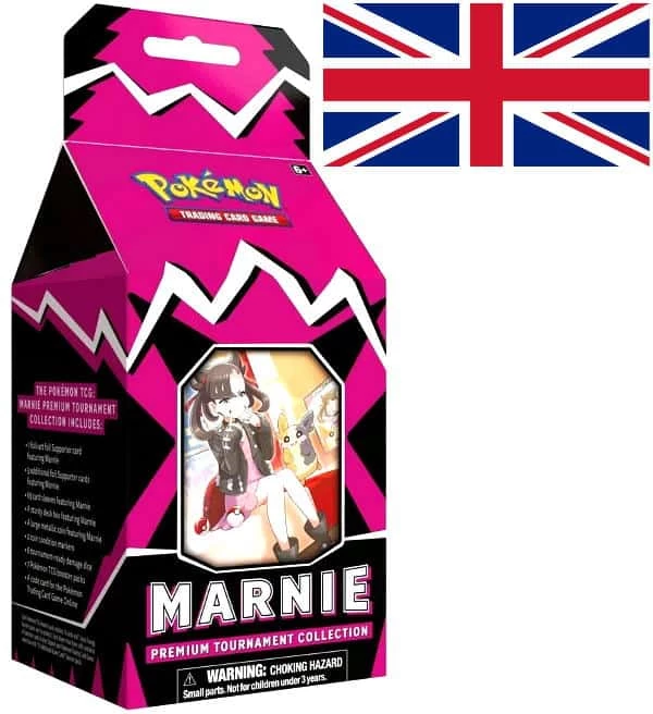 Die Pokémon „Marnie Premium Tournament Collection“ (Englisch) mit folgendem Inhalt: