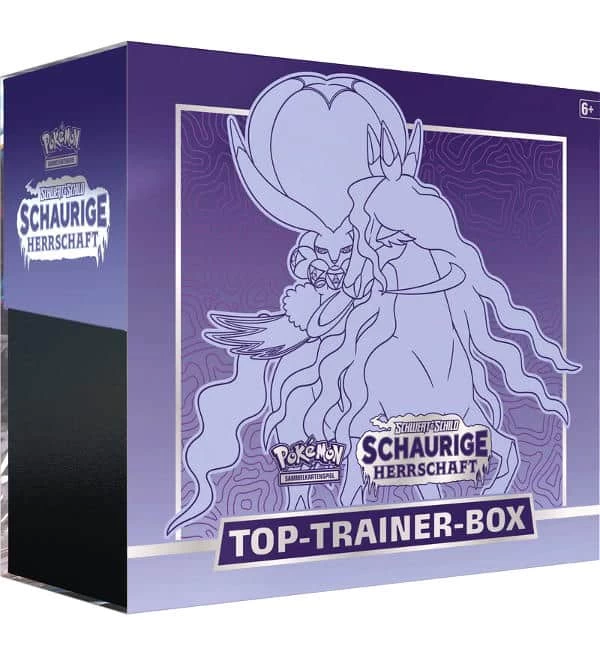 Die Pokémon Schwert & Schild 6 – Schaurige Herrschaft Top-Trainer-Box „Rappenreiter-Coronospa“ mit folgendem Inhalt: