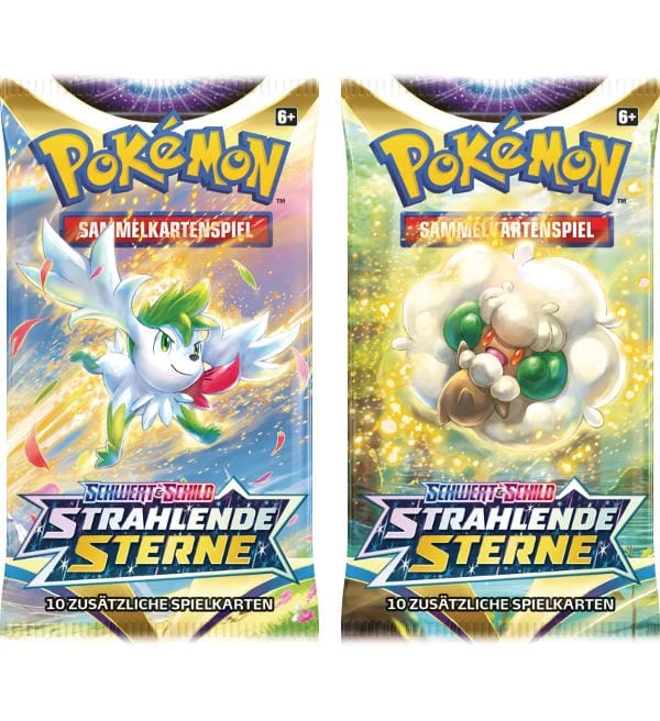Die Sterne stehen günstig für den Sieg! Von Licht erfüllt sinkt Arceus-VSTAR herab, um seine überirdischen Kräfte mit anderen Pokémon-V zu teilen. Shaymin-VSTAR, Glurak-VSTAR und Elfun-VSTAR verfügen über sagenhafte neue VSTAR-Powers, während Mimigma-VMAX, Stolloss-VMAX und Kingler-VMAX in seiner Gigadynamax-Form mit eigenen gewaltigen Kräften antreten. Entdecke funkelnde Konstellationen und begib dich auf den Weg zu astronomischer Größe mit der Pokémon-Sammelkartenspiel-Erweiterung Schwert & Schild – Strahlende Sterne!