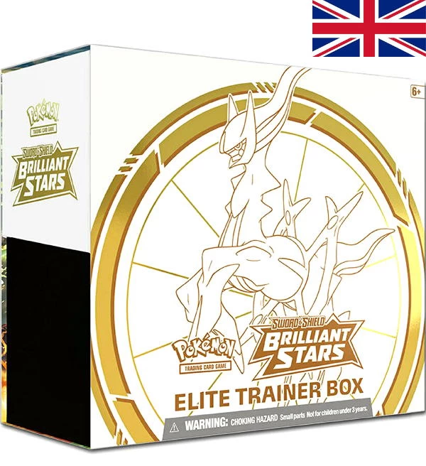 Die Elite Trainer Box (Englisch) zum Erweiterungs-Set „Sword & Shield 09 – Brilliant Stars“ des Pokémon-Sammelkartenspiels mit folgendem Inhalt: